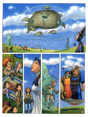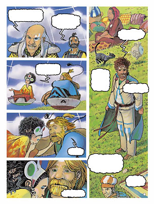 La deuxième Trilogie m’avait laissé sur ma faim car je voulais en savoir plus sur ce monde et surtout sur les personnages ! Et bien mon rêve est exaucé car la prochaine trilogie des Gardiens du Maser sera les origines et la jeunesse des individus que nous avons suivis pendant 6 magnifiques tomes. Malheureusement Frezzato ne sera plus au dessin mais juste au scénario (et la couverture) et c’est Ruotolo qui reprendra le dessin, mais n’ayez aucune inquiétude la relève est à la hauteur… enfin peut-on appeler ça la relève puisqu’il dessine le chapitre qui se déroule avant celui dessiné par Frezzato ? Bon allez, j’arrête de chipoter car nous avons là de toute façon du grand art que ça soit l’un ou l’autre. La chose que je retiens surtout, c’est la superbe colorisation qui donne beaucoup à cette saga et surtout c’est une colorisation classique, non informatique, ce qui apporte tout de suite un certain charme et une bd bien plus personnelle que les nouvelles générations de colorisation. Sinon pour en revenir à l’histoire, on retrouve vite ses marques et on est curieux de savoir ce mystérieux passé afin de mieux connaitre les raisons qui ont poussé nos héros à prendre leurs différentes voies et qui les rassembleront pour vivre l’histoire que nous connaissons déjà. C’est toujours assez dur de réaliser une préquelle car il faut bien faire attention de ne pas faire une « coquille » dans le cours de l’histoire et qui apporterait des incompréhensions. Pour le moment je n’en ai pas vu et tout concorde bien et j’ai déjà hâte de lire la suite… le tome 8 je parle, pas la suite, enfin vous m’avez compris !