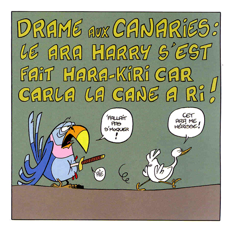 "Un drame aux Canaries : le hara Harry s'est fait Hara-Kiri car Carla la cane a ri!"