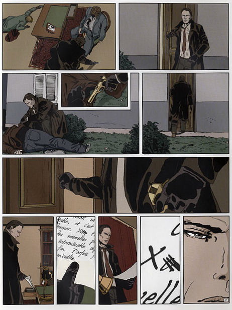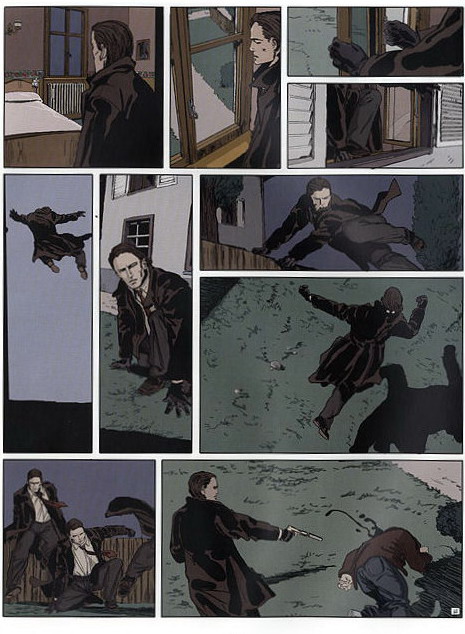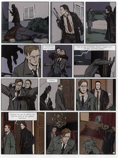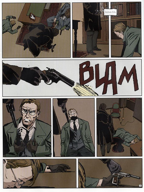 Le point d’orgue de l’album n’est pas à chercher dans les nombreuses tueries, qui serviront plutôt à appâter les bédéphiles (on n’attrape pas les mouches avec du vinaigre), mais bien dans un dialogue de sept pages, forcément philosophique, entre le tueur et l’une de ses victimes. Un bain de philo avant un bain de sang, ça ne se refuse pas !