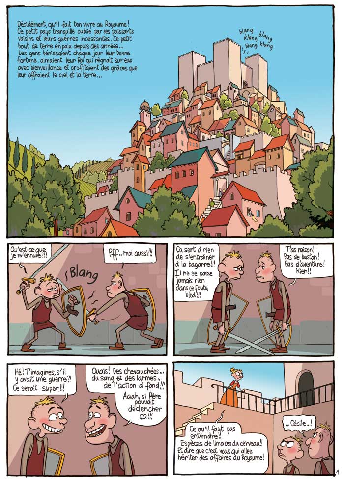 Le Royaume est un coin de terre paisible où il fait bon vivre, dirigé par un Roi plutôt bonne pâte. À ses côtés, la Reine, parfois un peu acariâtre, et ses enfants : Alain et Adrien, gentils mais pas très malins et Cécile, plutôt très maligne et pas très gentille (enfin surtout avec ses frères).