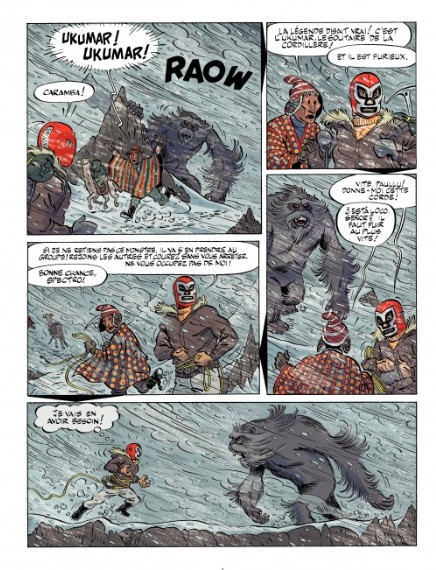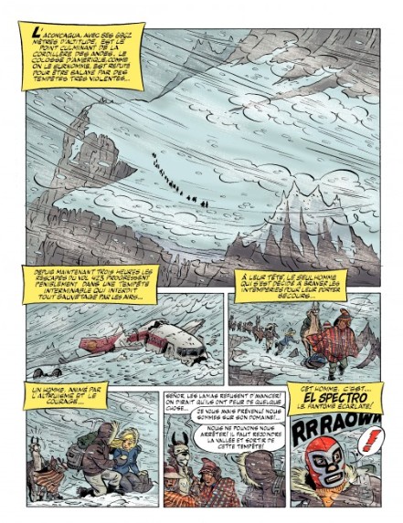 Spectro, un Luchadores super héros débarque dans la bande dessinée via Lombard. Un super héros qui ne quitte jamais son masque ce n'est pas banal et sort du cliché schyzophrènique du quidam qui se transforme en défenseur de la veuve et l'orphelin. Ici pas de fioritures, il est déjà masqué d'emblée. Mais quand on dit super-héros dans le cas de cette histoire c'est bien péjoratif car il n'a pas de super-pouvoirs mis à part son talent de catcheur latino. Sachez que vous avez affaire ici à une bd parfaitement étudiée pour vous détendre les neurones. N'allez pas chercher midi à quatorze heure. Le dessin de Rodier appuye ce point de vue avec un graphisme parfaitement aligné dans le style de l'histoire burlesque. Un bon moment à passer avec ce héros pas ordinaire. Bonne lecture.