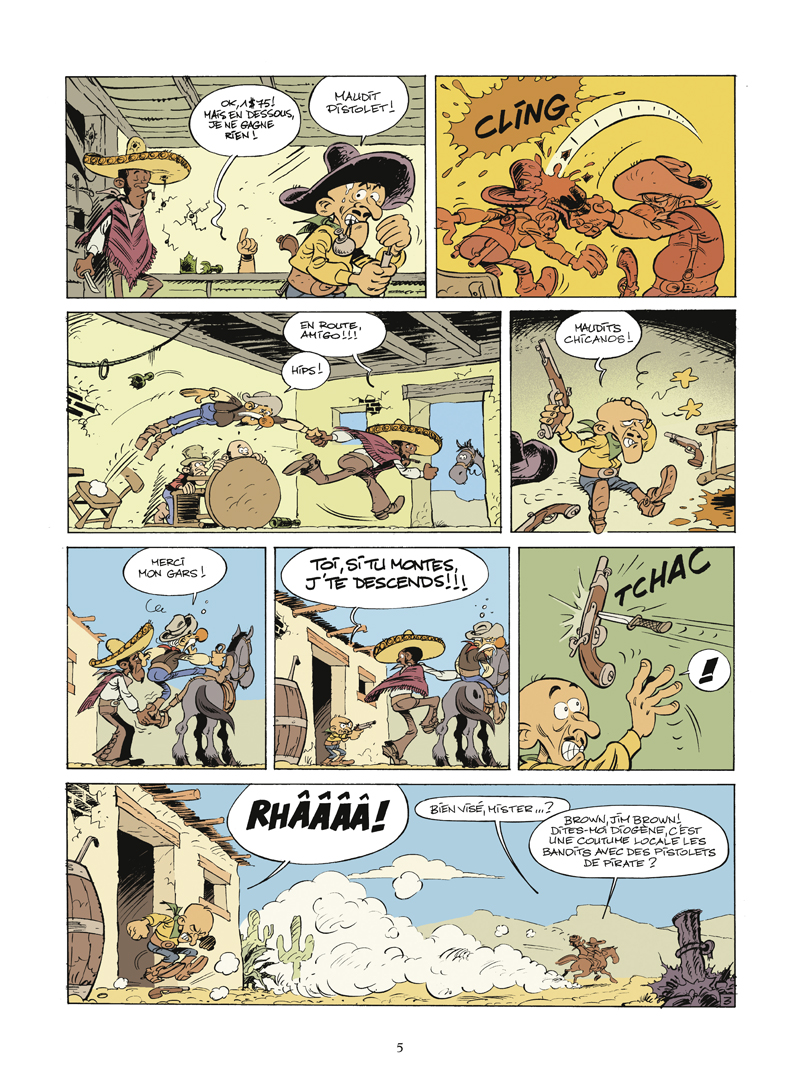 Comme l'indique la couverture, cet album à été le fruit de l'auteur de Ratafia. Nicolas Pothier propose un western burlesque et savoureux. Avec un héros pour le moins hybride et masqué aux relents de lucky luke, on se surprend à retrouver ce que les nostalgique du genre aiment à retrouver : le style de l'âge d'or de la BD. Les gags sont hilarants et on ne manque pas de rire au fil des pages, ils se succèdent frénétiquement pour notre plus grand plaisir. Graphiquement, Johan Pilet nous offre un dessin qui n'est pas sans rappeler ceux de l'illustre Morris. Un excellent travail qui n'est pas gâché et qui ne s'enlise pas dans les clichés. Un de ces série qui manquent un peu de nos jours dans le paysage du neuvième art. Un pur plaisir.