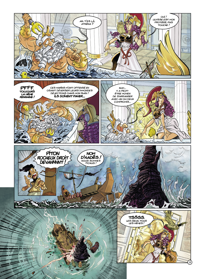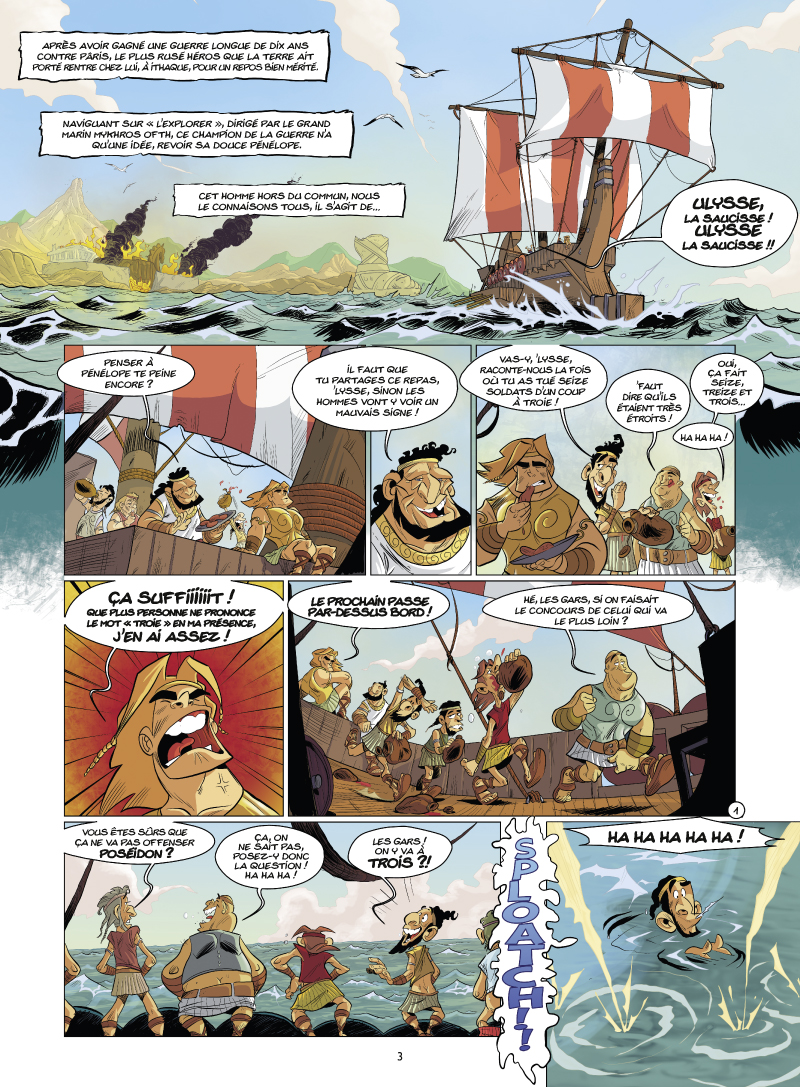 Après avoir gagné une guerre longue de dix ans contre Pâris, le plus rusé héros que la Terre ait porté rentre chez lui, à Ithaque, pour un repos bien mérité. Naviguant sur l'Explorer, dirigé par le grand marin Mykhros Ofth, ce champion de la guerre n'a qu'une idée, revoir sa douce Pénélope. On connaît la fin de son épopée, et même à peu près ce qui s'est passé en chemin pour peu qu'on ait suivi ses cours d'histoire. Mais nous a-t-on tout dit ? Grâce aux auteurs d'Un Héros presque parfait, voici L'Odyssée telle que vous ne l'avez jamais vue, avec les anecdotes peu glorieuses qu'on vous avait cachées, les jeux de mots qui fusent et les héros crétins. Certes, c'est moins grandiose, mais qu'est-ce que c'est drôle !