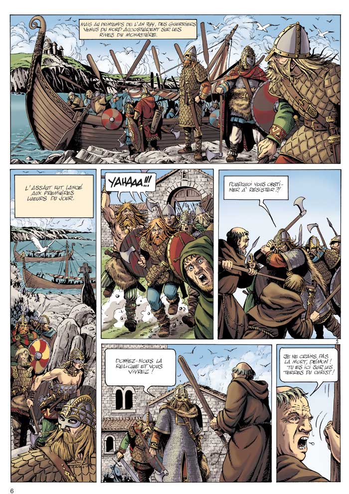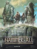 Nouvelle livraison d'intégrales au petit format « Magnum » chez Dupuis, ce mois-ci, avec à côté de Largo Winch, Jessica Blandy et Soda, cet étonnant « Hammerfall » regroupant en un seul volume 4 albums parus entre 2007 et 2009 sous le label « empreintes ». Etonnant parce que complètement atypique du catalogue de l'éditeur marcinellois et étonnant et intéressant parce cette saga due au très « nordique » Sylvain Runberg a tendance à mettre à mal certains clichés généralement associés aux (barbares) Vikings et aux (braves ) Francs ainsi qu'à leur Empereur Charlemagne. En un joli pavé, on a donc droit à quatre albums fouillés, d'une lecture qui n'est pas toujours des plus simples (2 pages serrées de lexique !) et qui séduira sans doute plus les amateurs d'Histoire que d'heroïc fantasy. En effet, la présence de créatures issues des croyances des vikings est plutôt là pour symboliser la « guerre de religions » qui se joue alors entre le dieu unique des Francs et la mythologie scandinave. On ne peut d'ailleurs s'empêcher de repenser aux apparitions de créatures fantastiques dessinées par François Miville-Deschênes dans le plus récent « Reconquêtes » (Lombard), lui aussi relevant plus du genre historique que de la fantasy pur jus. Graphiquement, même si le dessin fort classique de Boris Talijancic n'est pas exempt de défauts et si on regrettera, notamment, la ressemblance entre certains personnages qui ne facilite pas toujours la compréhension, on ne peut qu'être admiratif face à son souci du détail. D'un côté, il nous en met ainsi plein la vue grâce à certaines scènes à grand spectacle, à de très beaux décors aussi (un peu plus diffus dans « les gardiens d'Elivagar »), mais de l'autre on appréciera le soin quasi maniaque apporté à la représentation des vêtements, armes et bateaux de ces guerriers devenus légendaires. D'autant que ses planches, contrairement à d'autres, supportent plutôt bien le passage au format « Magnum ».