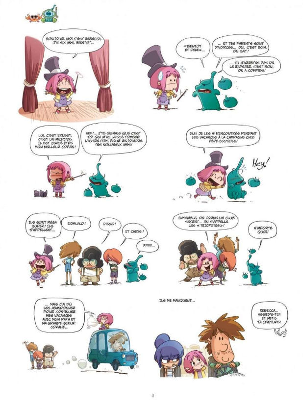 des couleurs lumineuses et une histoire pas comme les autres ! C’est tout en finesse et sensibilité que le duo Bianco et Dalena nous emmène dans l’univers d’Ernest et Rebecca. Univers toujours aussi doux, poétique, drôle et rigolo. L’évolution de Rebecca est d’une incroyable justesse, et la petite fille change et grandit en même temps que son monde et son entourage. Savant mélange de réalisme et de poésie, dans lesquels les enfants s’y retrouveront totalement, le pays de Guillaume Bianco et Antonello Dalena est un petit bonbon sucré à savourer joyeusement en ce début d’été ! Si vous ne l’aviez pas déjà découvert dans Spirou au printemps…