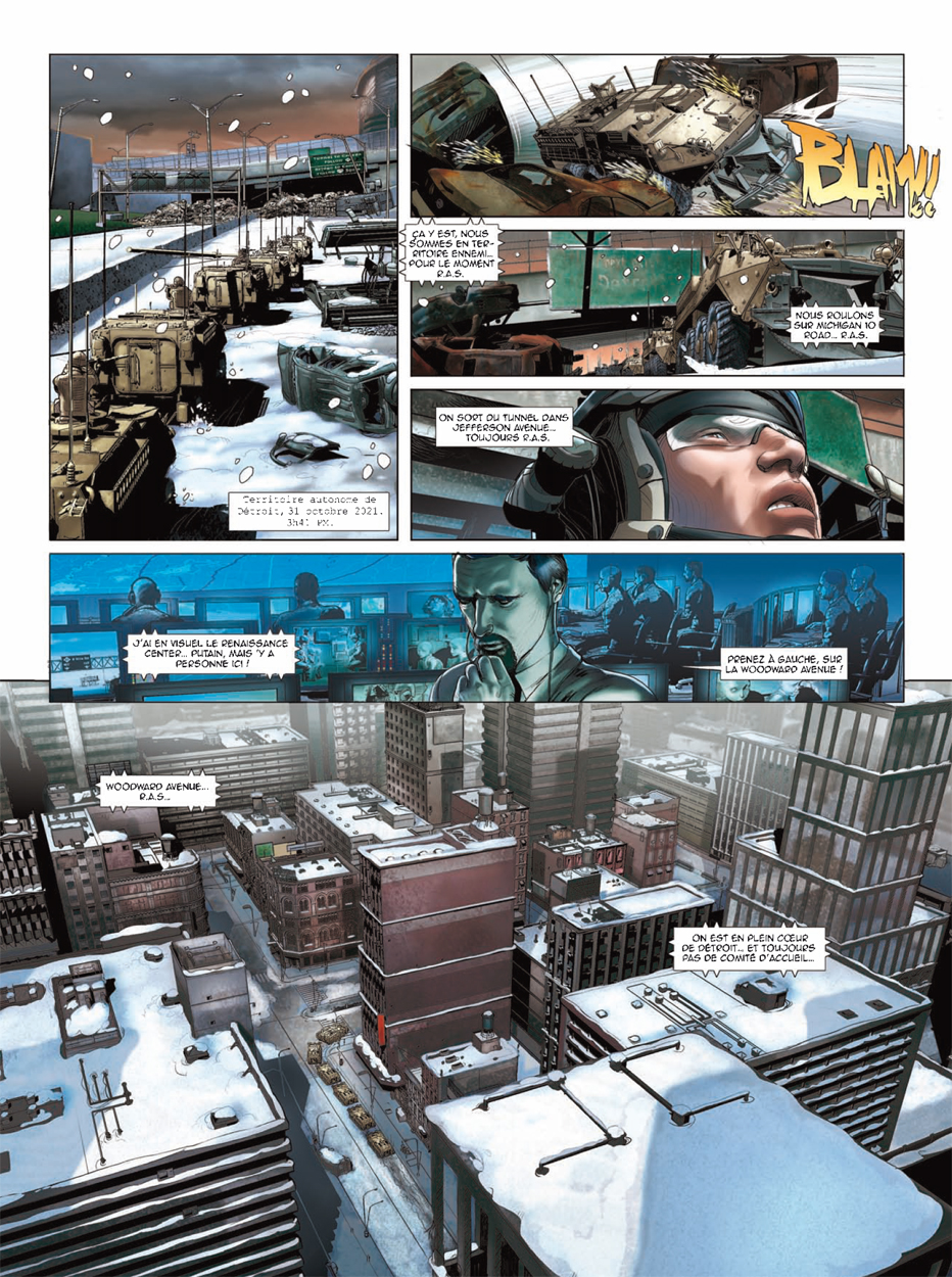 Une colonne de blindés pénètre dans le territoire autonome de Détroit Michigan. En l’espace de quelques minutes, les soldats américains sont pris sous le feu ennemi et leur patrouille est totalement décimée. Pourtant, cette hécatombe était prévue, elle sert d’écran à une opération d’infiltration savamment orchestrée par Father, un mystérieux colonel omniscient enfermé dans une salle d’opération high-tech.
