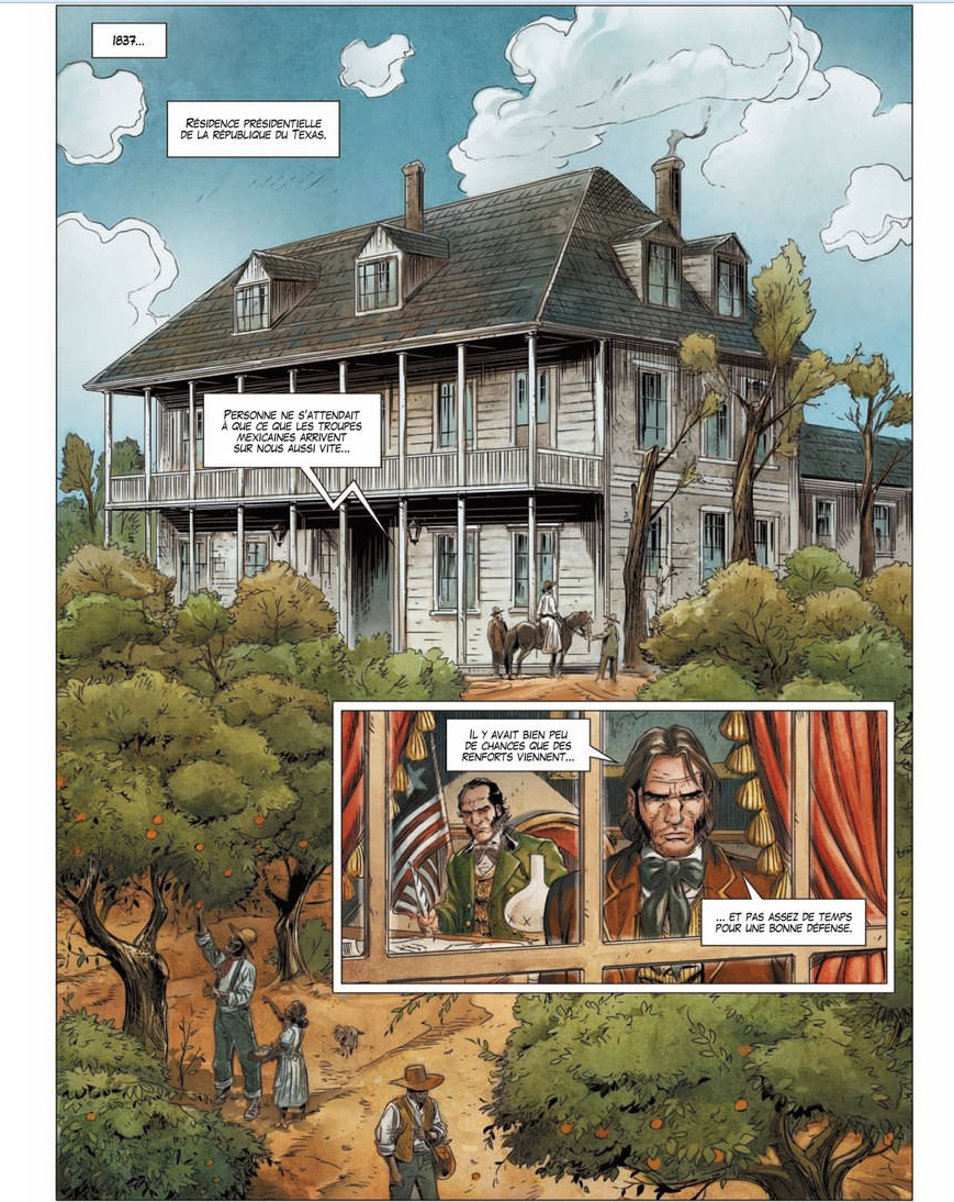 Voici venu le tome 2 d'Alamo réalisé par le duo Dobbs et Perovic. Le récit écrit par le scénariste comblera encore son lectorat. La narration de cette vision de la prise d'Alamo par les mexicains sert les intérêts du principal protagoniste et constitue une idée intéressante qui apporte toute son originalité à l'histoire et nous emporte dans une aventures haletante et passionnante. Et ce second tome ne déroge pas à la trame évoquée dans le premier, surtout pour les amateurs pur et dur de Western. Cette fois, les armes parlent et le massacre commence. Admirablement porté graphiquement par Darko Perovic auquel on doit notamment les carnets secrets du Vatican, ce deuxième tome achève ce diptyque d'une façons magistrale et d'une manière bien homogène. Assurément l'un des plus beaux albums qui m'aie été de lire en cette rentrée 2012. Un bijoux que je vous recommande au plus haut point.