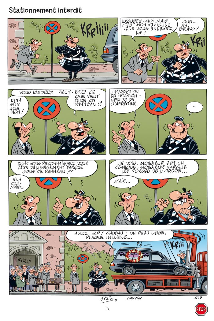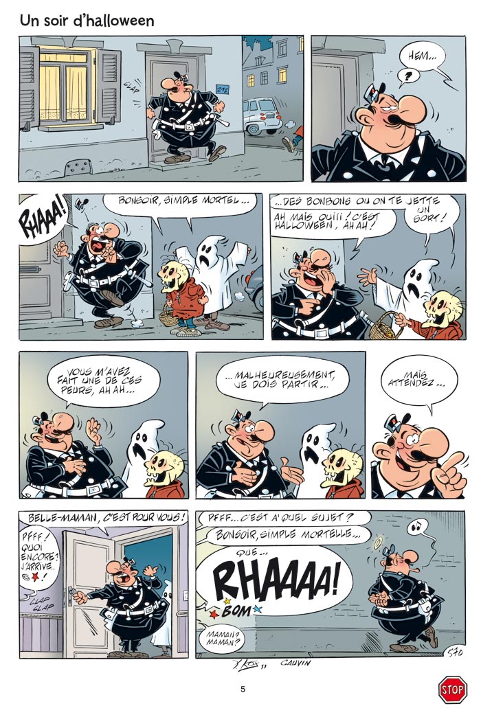 Vingt huitième tome des aventures de l'agent 212. Malgré l'importance du nombre d'albums déjà parus, il reste encore beaucoup de matière à explorer pour le duo formé par Kox & Cauvin. Certaines personnes diront que les situations sont exagérées mais je peux vous dire que je viens de vivre plus ou moins le gag de la première planche concernant des funérailles pas plus tard que ce week-end ! De même, j'ai connu un agent ayant verbalisé ses propres collègues qui l'attendaient à son domicile afin de fêter son anniversaire ! La plus cocasse étant l'hisroire de cette vieille dame servant à deux agents de quartier un verre d'alcool alors que son mari ayant vidé la bouteille avait remplacé le précieux liquide par de l'eau du robinet ! Aucun des deux agents n'a bronchés et ils ont bu leurs verres comme si de rien n'était. Sinon, c'est toujours un agréable moment de lecture humoristique destiné à tous les âges.