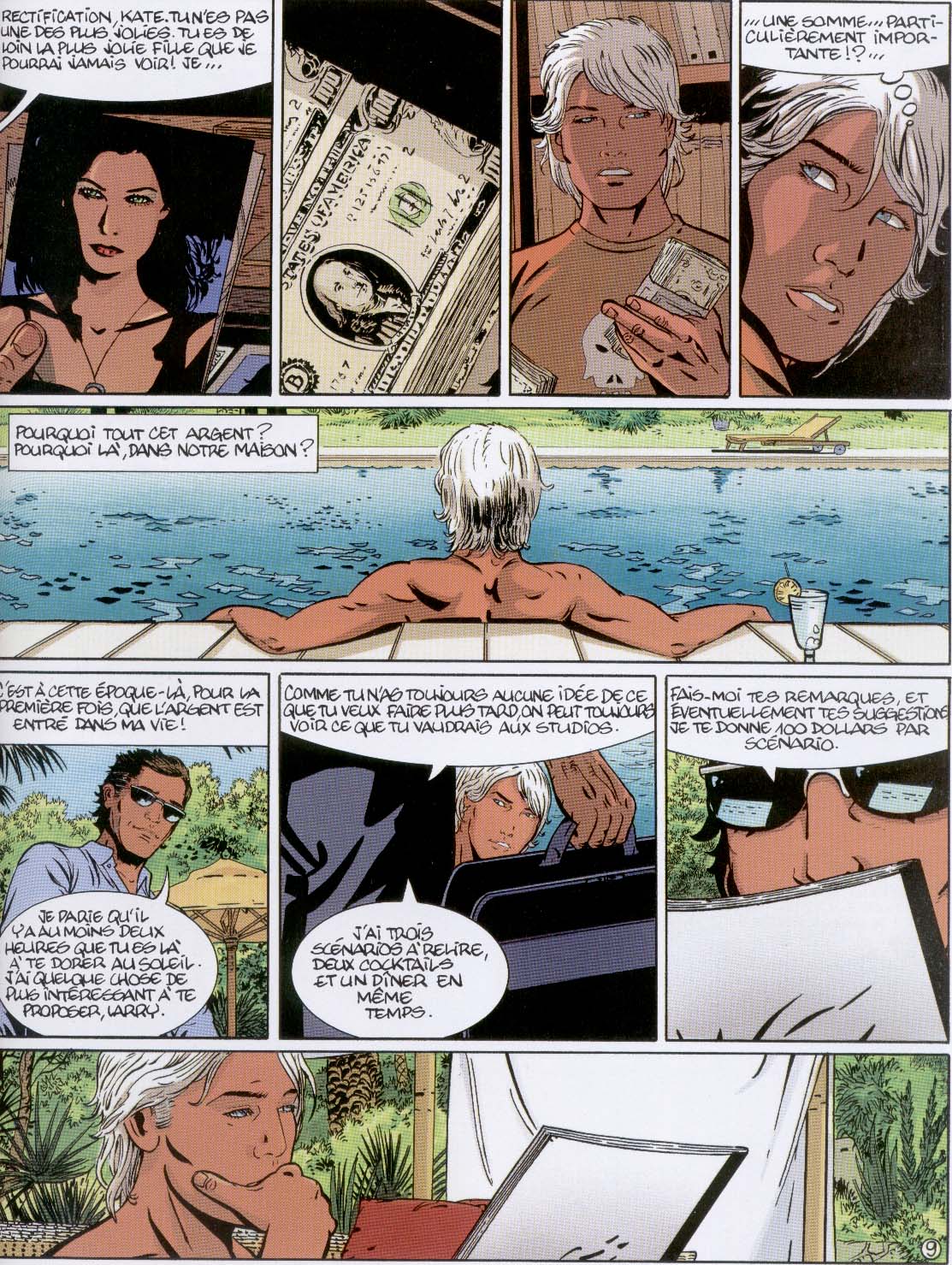 Avec Larry, nous découvrons d’abord les horreurs de la fin de la guerre ’40-’45, ensuite les lois sanguinaires des cartels puis les régimes totalitaires corrompus avant d’arriver plus récemment sur le passé de Larry et le monde du pétrole. Entre convoitises, orgueil et corruption, Larry B. Max rétablit l’équilibre, sur fond d’écran de cinéma et d’une actrice particulièrement charmante... Le dernier épisode, la Guerre Noire, nous permet de revenir sur le passé de Larry, ses origines mises sous le signe du cinéma et de découvrir le passé glorieux de celle qui deviendra la confidente attitrée de Larry, Gloria Paradise.