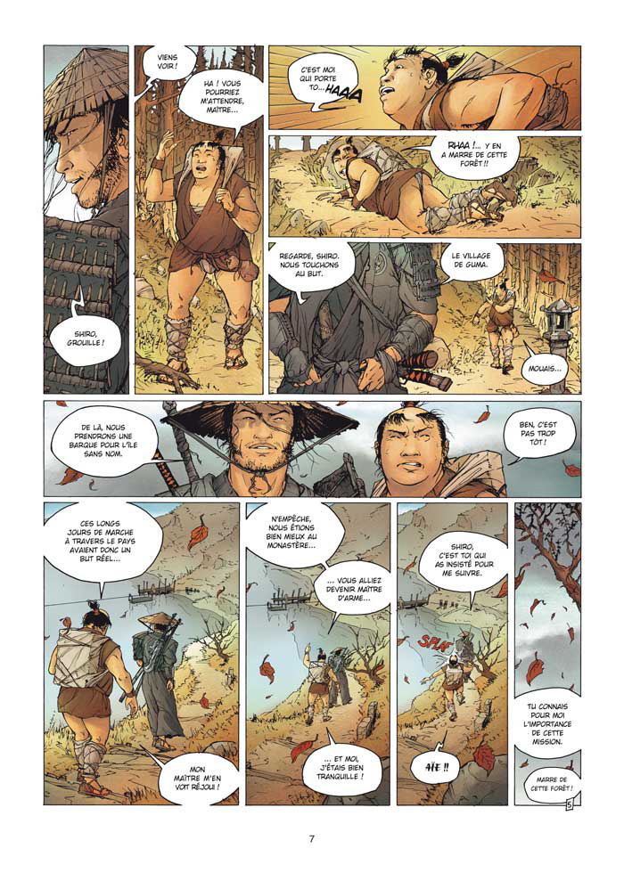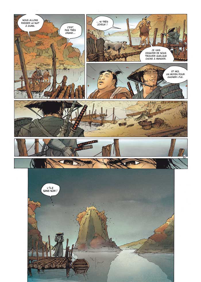 Ce qui frappe le plus avec Samurai, c’est la fluidité des combats. On sent presque la lame « sabrer » les pages grâce au découpage dynamique, rythmé et efficace de Genêt. En plus notre Takeo a de la gueule. Il me fait presque penser à Clint Eastwood jouant au Samurai. Ce 5 ème tome (1er du nouveau cycle) est certes un peu plus sombre que les précédents mais c’est un peu comme le calme avant la tempête, la tension monte et le duel à venir promet énormément. On notera aussi un album sans effet fantastique seulement un homme et une lame pour rentrer dans la légende.