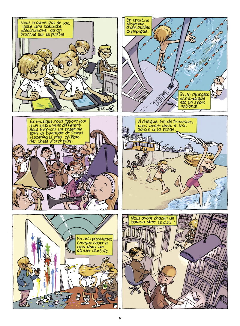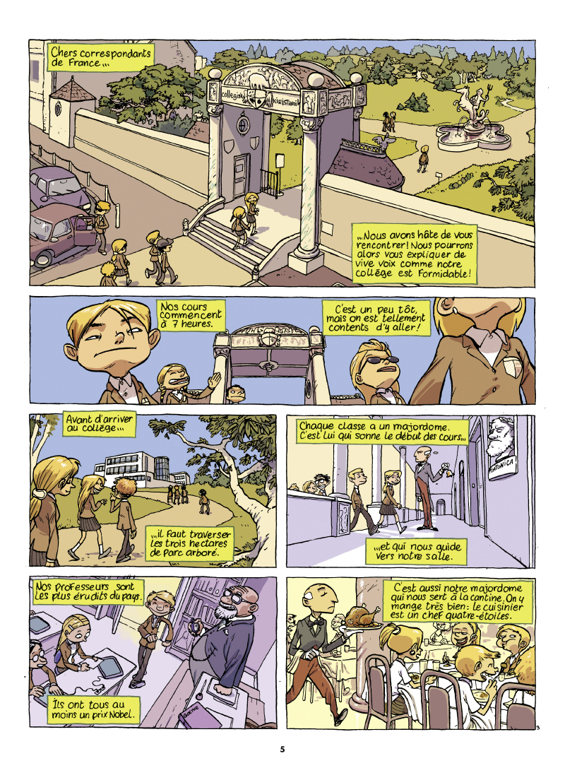 Un livre destiné à un public au début de l'adolescence, qui aborde la propagande organisée par une dictature vis à vis des yeux de la communauté internationale. Nos jeunes étudiants vont en réalité découvrir lors de leur voyage au Kiristan que tout ce qui brille n'est pas forcément en or ! Un scénario très bien ficelé et illustré par Téhem qui garde la ligne ayant fait le succès des séries Tiburce & Malika Secouss. A découvrir pour les novices ne connaissant pas cette série.