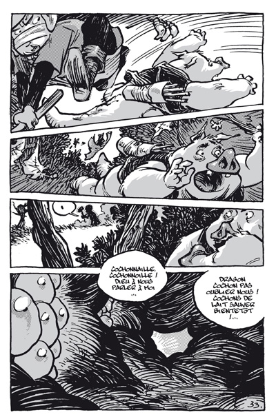 Massacrés par les aventuriers, les Cochons de Lait s'exilent en masse pour rejoindre le Dragon Cochon, dieu vivant de tous les Porcos.