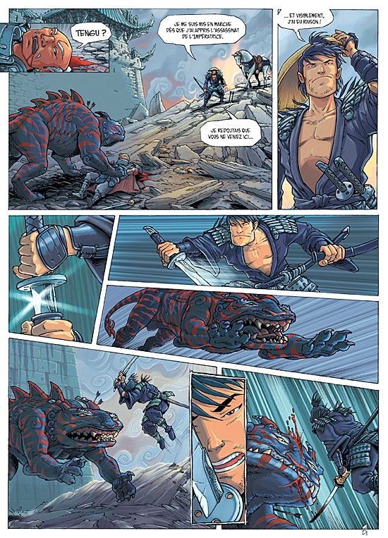 Alors que les hommes règlent la succession du Roi Blanc et appréhendent le conflit à venir, le Tengu joue la dernière carte qui lui reste: mettre à l’abri les trois filles d’Okura afin qu’elles soient épargnées par les hordes du Roi Noir. Pour cela, Jade, Lame et le Tengu doivent encore retrouver Soie, la dernière des héritières du Roi Blanc. Nombreux sont les royaumes à traverser et les choix à effectuer. Mais, au fond, tout se résume à une seule question: la voie de la mort ou celle de la vie… ? C’est à sa réponse que l’on reconnaît un guerrier !