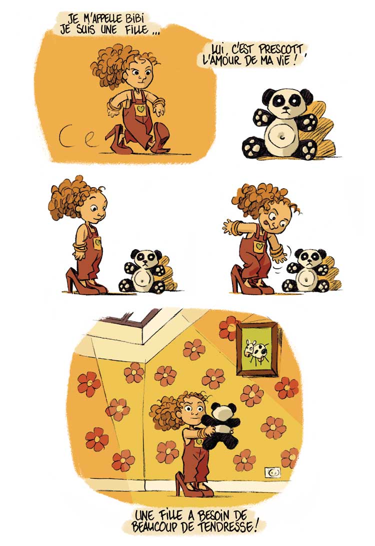 L'auteur raconte ici, via Bibi, le monde avec des yeux d'enfants. A la manière du Petit Spirou ou de Titeuf, l'enfance est terriblement bien décrite. On retrouve très facilement un peu de notre propre enfance dans les personnages ou situations, ce qui prouve que le but de l'auteur est atteint.