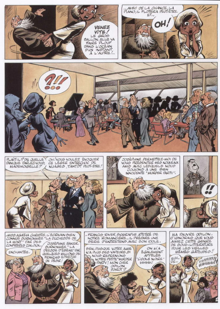 Odilon Verjus, en compagnie de Laurent et de la fougueuse Joséphine Baker font la traversée en Zeplin de Berlin au Brésil. Entourés de Nazi et d’une romancière à succès, Agatha Christie, tout simplement, ils se retrouvent dans le théâtre de 10 petits Nazis, une enquête qui promet bien des surprises !