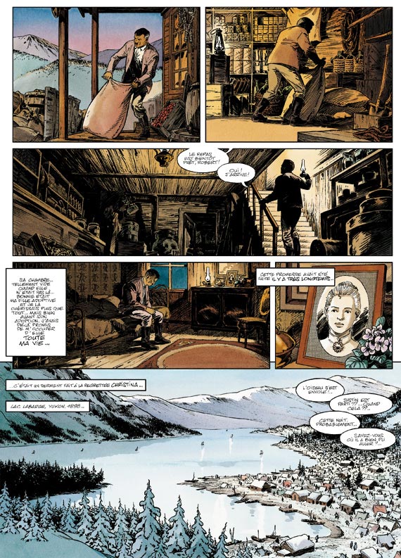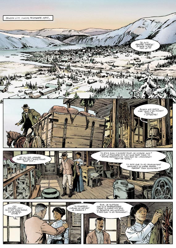 Thirault et Radovic proposent une alchimie originale : évoquer les parcours croisés aussi tragiques que romantiques de trois femmes, dans les décors sublimes du Grand Nord. Une étrange compagnie longe la rivière Klondike : des amants en fuite, une petite fille et leurs compagnons d'infortune. Mais deux bandits sont sur leurs traces, Doug et Sydney.