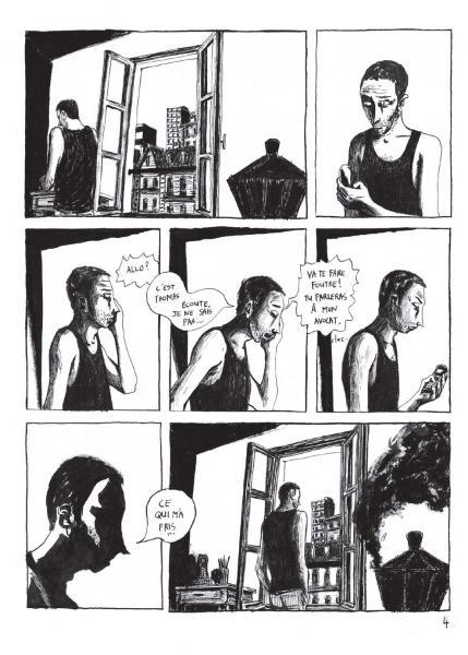 L'auteur nous livre dans ce one shot une complexité teintée d'angoisse. Les stress inhérents à la vie quotidienne sont dépeints ici d'une façon très acerbe.  De plus, Emmanuel Olivier embrouille les pistes volontairement. Le personnage est torturé, l'atmosphère lourde, ses rêves sont entrecoupés avec la réalité. Si la fin justifie les moyens alors Olivier s'en sert à merveille. En ce qui concerne le dessin, noir aux aplats larges tant on en dirait presque de la suie, et bien, le lecteur restera soit dubitatif ou soit admiratif. Cela dépendra de votre sensibilité graphique. Cependant, la technique de découpage de l'auteur ne souffre pas de défaut majeur et même, interpelle. En quelques sortes, à la lecture, on se surprend à vouloir aider le personnage dans ce drame, on fini par s'y attacher. Peut-être est-ce dans l'air du temps, cette noirceur, ce stress, ces questions souvent sans véritables réponses. En tout cas, voici un album d'une jeune maison d'édition qui vaut vraiment la peine qu'on s'y attarde, ne fut-ce que par le côté original d'un tout narratif et graphique.
