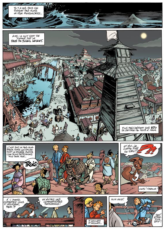 Lors de l’inauguration du parc "Edo-Resort", Spirou et Fantasio se retrouvent aux prises avec d’étranges assaillants… Sauvant la petite Loon, enfant magicien, ils se retrouvent dans une aventure palpitante au pays du Soleil Levant