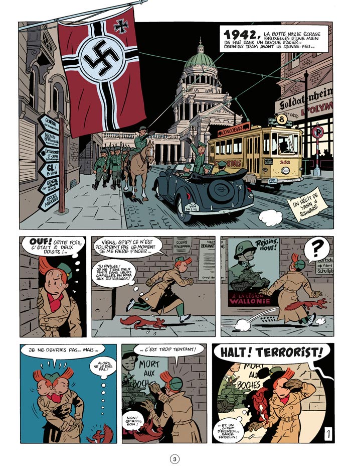 1942. Bruxelles est occupé. Spirou, groom au Moustic Hôtel qui a été réquisitionné par les Allemands, et Fantasio, journaliste au quotidien LE SOIR "volé", se reprochent mutuellement leur trop grande proximité avec l'Occupant.