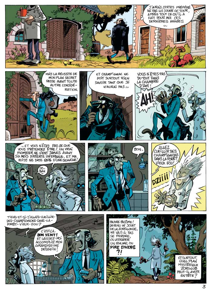 Le célèbre savant Pacôme de Champignac coule des jours paisibles dans son château. Alors qu'il vaque à ses occupations expérimentales, notre ami mycologue reçoit la visite intrigante d'un Zorglub plus altier que jamais... Mais que penser du comportement du Comte qui confond son plus fameux rival avec un vulgaire plombier ? Zorglub aurait-il minutieusement prévu tout ce qui est en train d'arriver ?