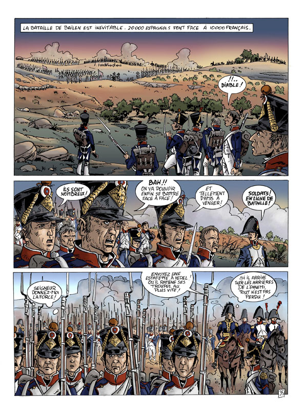A l'instar du tome 1 qui etait etonnement bien rempli a la limite du surmenage occulaire mais n'en déplaise, ce tome 2 a été bien corrigé pour laisser plus de place au graphisme. L'ambiance lourde et chaude d'andalousie est bien représentée dans ces pages. Un côté de l'histoire napoléonienne que nous découvrons avec intérêt, la période espagnole peu connue du public lambda qui apporte un regard neuf.