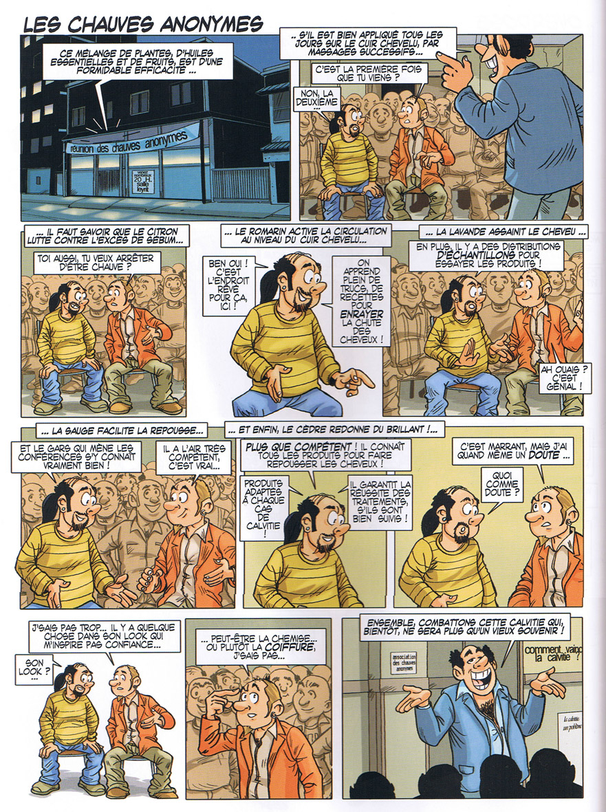 Ce titre remonte vite le moral, pour nous réconforter et nous dire que ce n'est pas une fatalité mais plutôt une bonne tranche de rigolade et petite pointe de charme aussi envers la gente féminine. En tout cas l'auteur par son expérience personnelle, a su mener cette bd avec brio et partager les déboires puis les avantages de perdre ses cheveux.