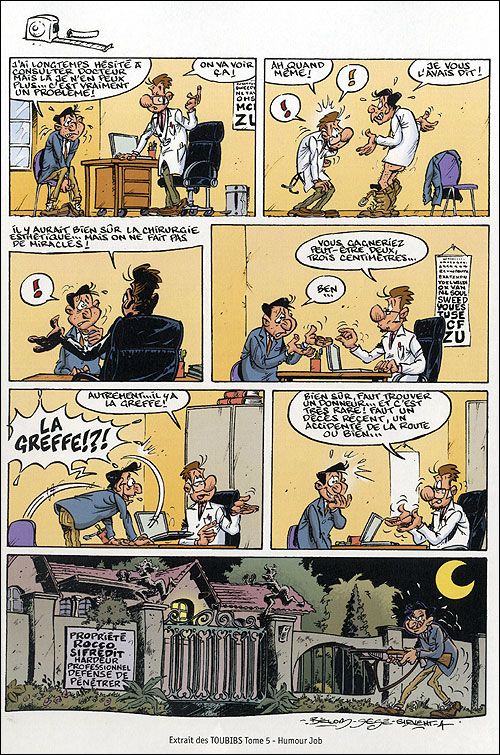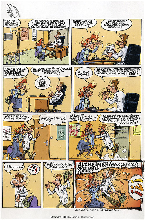 N’hésitez pas à dépasser la dose prescrite, c’est bon pour vos zygomatiques et ça n’aggrave pas le trou de la sécu ! De toutes façons on dit que le rire peut tout guérir...en tout cas si vous souffrez de quelconques symptomes de marrasme ou de dépression naissante, faites donc un passage chez les toubibs de chez Bamboo. Bon daccord les gag parfois donnent dans la facilité mais c'est pour vous faire mieux passer le pilule. Les tronches des personnages sont déjà un bon placebo contre la mauvaise humeur. Si vous ne devez pas aller chez l'ophtalmo bientôt, regarder de près les situation en arrière plan parfois il y a des "sous-gags" assez captifs. Pour la posologie, vous faites comme vous voulez mais moi j'en prend au moins une fois par jours.