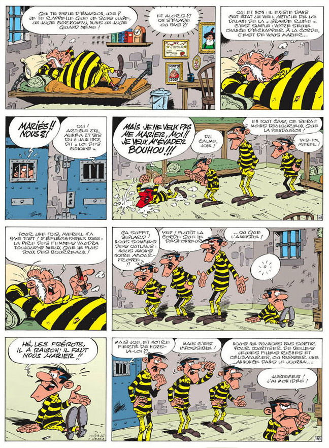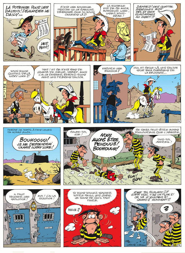 Le dessin d'Achdé n'a rien à envier à celui de Morris. On peut d'ailleurs dire que son trait est très fidèles à celui du maître. L'humoriste Laurent Gerra, quant à lui, nous gratifie d'un scénario extrêmement amusant bourré de petits jeux de mots comme les adoraient Goscinny.