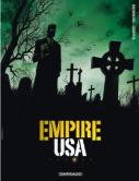 Empire USA nous est arrivé avec une grosse campagne de promotion .Il faut dire que le challenge est attrayant, 6 albums en 4 mois seulement, c’est quasi un record. Mais voilà, quand on fait sonner trop de trompettes, moi je deviens méfiant et j’ai attendu que l’on me passe les 2 premiers tomes pour me faire un avis. Le début est intéressant, la vision future de USA est à découvrir, la jeunesse du personnage principale est agréable et puis…..bardaf…j’ai complètement décroché .Déjà l’autre qui parle comme Yoda m’a spécialement énervé mais c’est qu’un détail, les dialogues m’ont carrément endormi. Et plus, le scénariste à l’art de passer du coq à l’âne en 2 cases. Je reconnais que c’est le genre d’histoire que j’apprécie guère, Largo Winch et IR$ sont loin d’être des référence pour moi. Bref, je n’ai vraiment pas le courage de lire le tome 2. La BD, j’aime quand elle me permet de m’évader, là, elle me scotche au présent et ça m’ennuie. J’ai au moins aimé le dessin de Griffo malgré que je l’apprécie plus dans un contexte non contemporain.