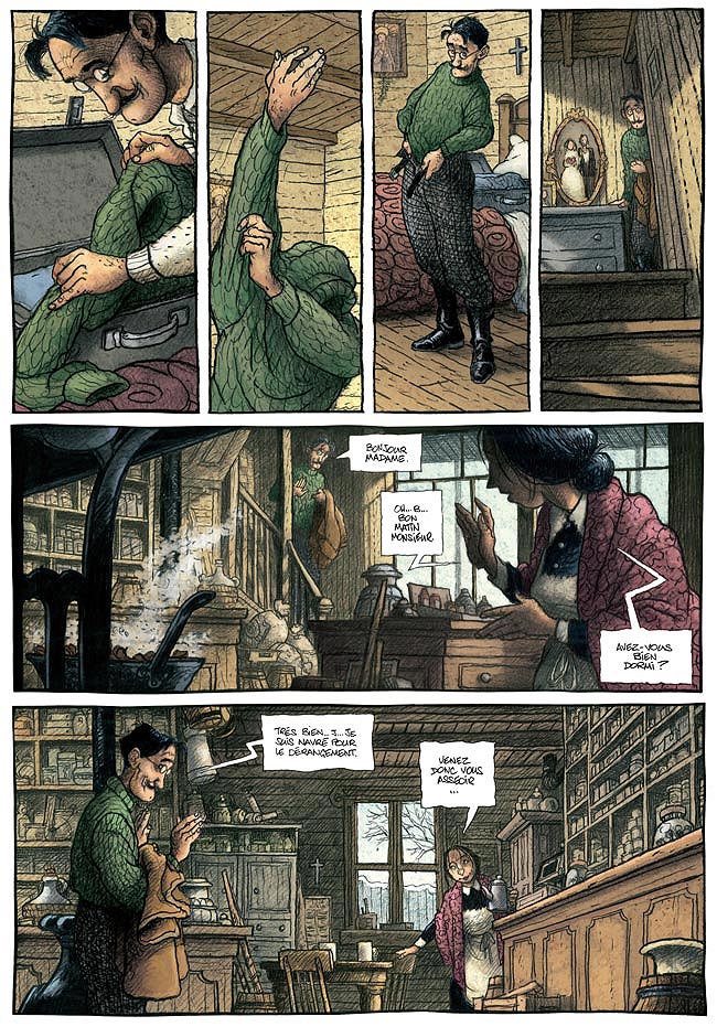 Pour concocter ce petit bijou qu'est Magasin Général, deux auteurs renommés, Régis Loisel (Grand prix d’Angoulême en 2003) et Jean-Louis Tripp se sont associés d’une manière particulièrement originale. Tous deux interviennent autant sur l’image que sur le scénario et les dialogues de cette BD. Leurs talents conjugués a donné naissance à un univers graphique et narratif totalement neuf. Avec une gourmandise très communicative, les auteurs livrent ici une chronique sociale très humaine, peuplée de personnages intenses et savoureux. Leur attachement pour le Québec – ils y résident l’un et l’autre – a servi de moteur à cette histoire truculente aux dialogues savoureux en français québécois de Jimmy Beaulieu. Cet épisode, Montréal, est particulier puisque c’est la première fois que la série quitte son cadre rural. Le séjour de Marie dans la grande ville est une péripétie adossée à un véritable arrière-plan historique. Dans les années 20, la province de Québec était un monde extrêmement rural. Et, la découverte de Montréal était effectivement pour les gens de la campagne, une expérience prodigieuse dont ils se souviendraient ensuite toute leur vie. Le travail en symbiose de Loisel et Tripp se poursuit dans cet opus baignant de simplicité et de sensibilité. Marie a fauté et les auteurs nous donnent une leçon de tolérance, d'amour et de solidarité. Richement documenté, le scénario dégage tendresse et poésie, tandis la voix off de Félix, le mari décédé, commente avec une certaine aigreur les événements. Caractères et psychologie des protagonistes sont finement étudiés. Il y a de la magie et du charme dans cet univers attachant. Les auteurs nous prouvent qu'il ne faut pas nécessairement faire une intrigue compliquée pour intéresser les lecteurs. Le graphisme époustouflant à quatre mains traduit parfaitement les émotions des personnages, par ailleurs très pittoresques. Le découpage incisif rythme chaque planche et les décors sont de toute beauté. Les couleurs douces de François Lapierre illuminent chaque case. On attend le dernier tome avec impatience.