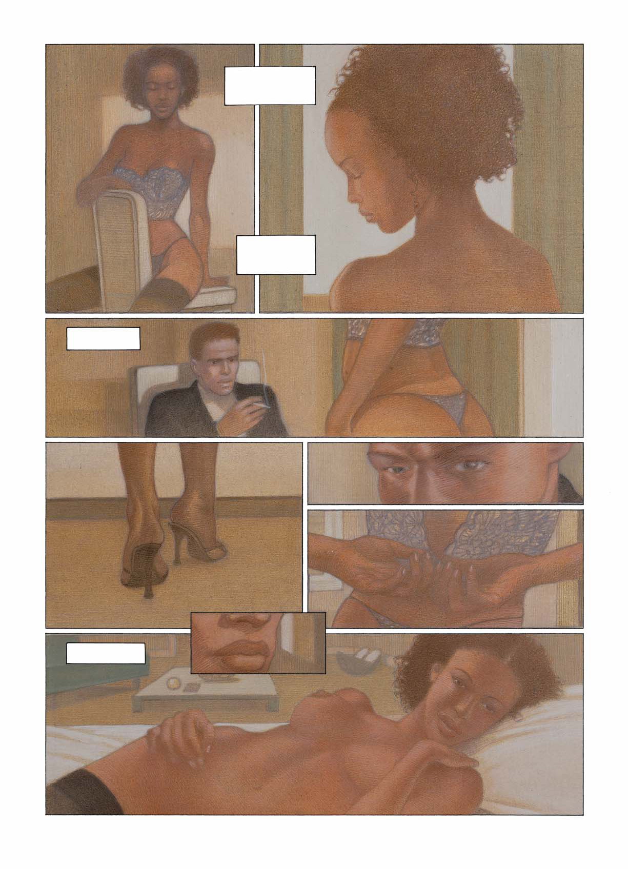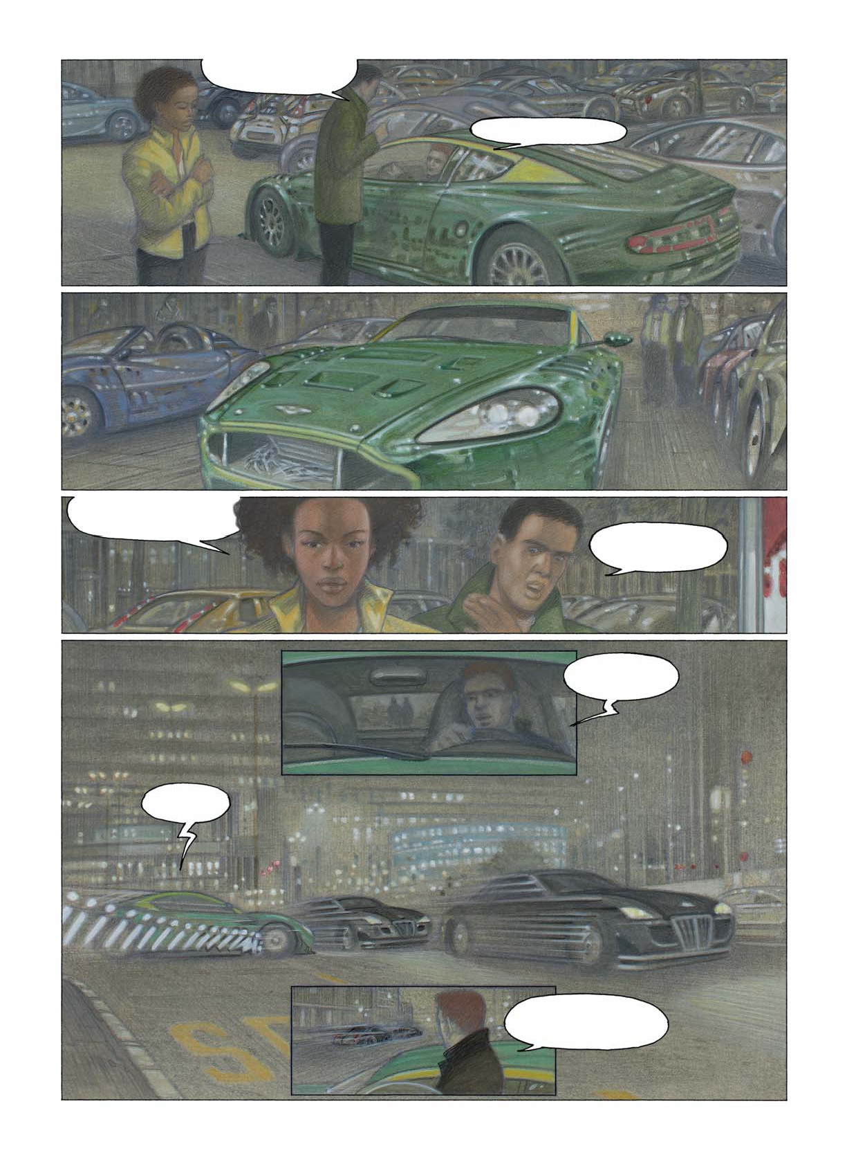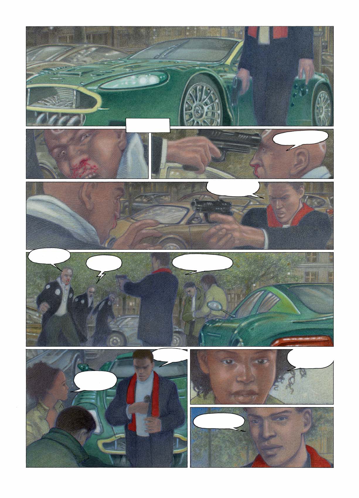 Dans Deux vies, la lutte effrénée pour le pouvoir économique et l’intrigue politique sont au coeur de l’histoire. Théo est une sorte de justicier des temps modernes, qui, à sa façon, déchaînée, violente et brutale, essaie de venger la mort de son frère, jeune idéaliste assassiné par leur propre père. A priori, il n’y a donc ici aucune place pour des sentiments autres que la vengeance, la haine ou l’abandon. Cependant, la rencontre entre Théo, Rose et Simon, le compagnon gravement malade de celle-ci, va changer la tournure des événements, sans toutefois susciter de la part de Théo aucun remord pour les atrocités qu’il a commises. Mais, malgré les apparences, l’amour est bien présent dans la trame, même s’il est chargé de tragédie, de renonciation et de sacrifice. Le dessin de Didier Eberoni est très sensuel et en accord avec l’univers feutré et excessif de l’album. Dessinateur de femmes, illustrateur et coloriste talentueux, son style confère volupté et sensibilité au récit.