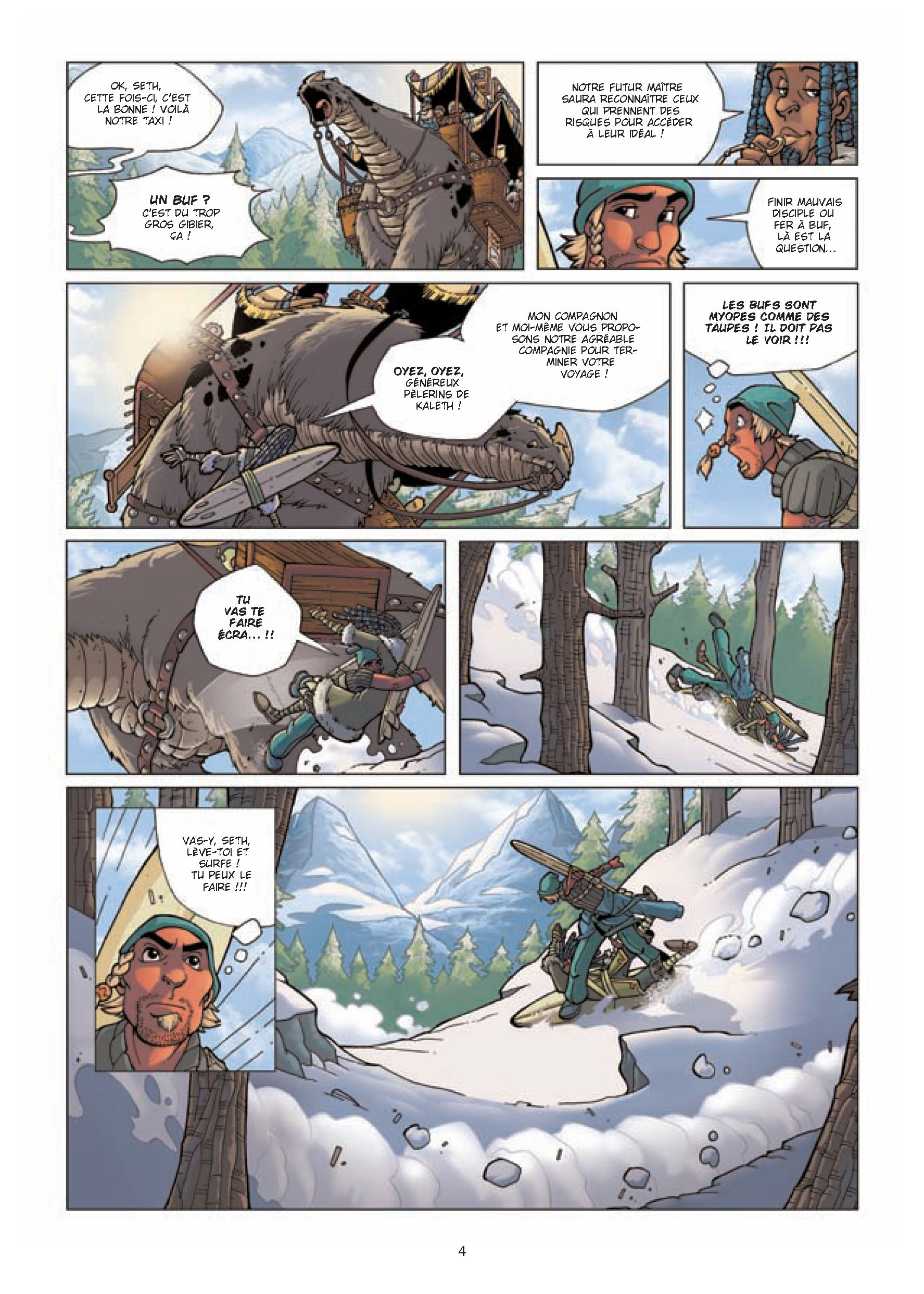 Moi ce que je recherche tout le temps que ça soit dans n’importe quel domaine, c’est l’originalité. La bande-dessinée n’y coupe pas et avec la multitude de titres qui existent à l’heure actuelle, cela devient très difficile de ne pas avoir un air de déjà vu. Quand j’ai lu que les éditions Soleil annoncées Totem comme étant de l’heroïc fantasy, j’ai tout de suite eu peur d’avoir encore le droit à un plateau de nains, d’elfes, de guerriers, de dragons et autres orques (pas que je n’aime pas mais à force…). Mais il est vrai que l’on associe toujours facilement « heroïc fantasy » avec ce genre de personnages alors que ce n’est pas le cas. Le but de l’heroïc fantasy est de rassembler des héros, une quête et un monde imaginaire, donc il n’y aucun doute à avoir Totem fait bien parti de cette catégorie.