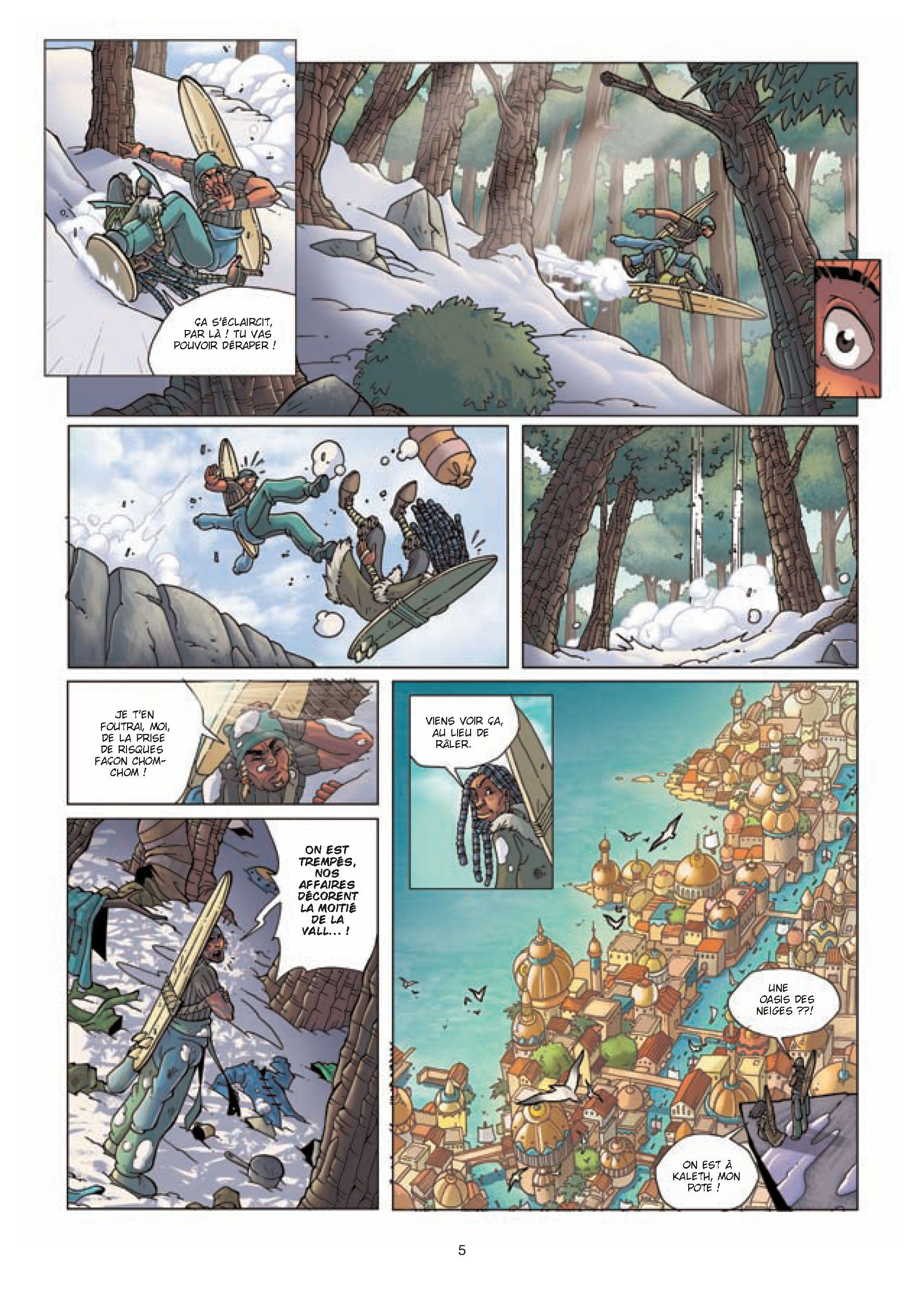 La première chose qui flashe au yeux c’est le superbe dessin de Ceyles et la couleur de Cyril Vincent, on se croirait dans un véritable dessin-animé entre un bon Walt Disney, un Dreamworks et un Ghibli. C’est bien simple, vous prenez les décors d’Aladin avec un héros ressemblant à ceux d’El Dorado puis avec une pointe de Miyazaki dans les Totems et du coup le savant mélange vous fait tellement saliver qu’on en essorerait la bd. J’exagère peut être un petit peu, mais là je suis content de retrouver un tel univers à croire que ça commençait à me manquer avec la surabondance de dessins animés en 3D. Certains trouveront peut être que ce titre vise un public plus jeune car on retrouve tous les codes de l’héroïsme comme dans un Zorro, Robin des bois ou d’Artagnan au héros charmeur, brigand et courageux tout à fait le genre de héros qui a bercé notre jeunesse. Croyez-moi des fois il est bon de se replonger dans ce genre de lecture !!