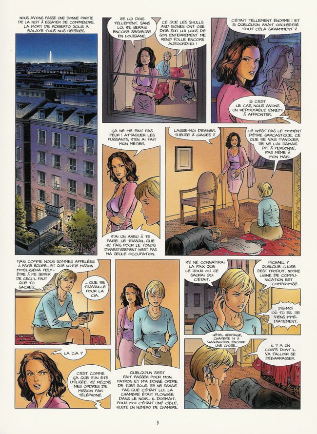 Tiens, on double les Desberg au scénario puisque Filmore est le frère de Stephen .Tiens, 2 héroïnes, une froide blonde et une pulpeuse brune .Tiens, une tueuse et une avocate. Tiens, un mélange d’espionnage et d’affaire financière. Tiens une histoire qui m’a ennuyé au plus haut point. Tiens, rien d’étonnant mais là, excusez moi, c’est d’un banal affligeant. En plus d’être une copie de Lady S ou de Nikita, c’est souvent très difficile à suivre, on change de sujets toutes les 2 pages .Tiens, c’est recommandé par NT1, Nullissime tome 1 ? Bref, mais je suis bien le seul apparement, passez votre chemin, il n’y a rien à voir.
