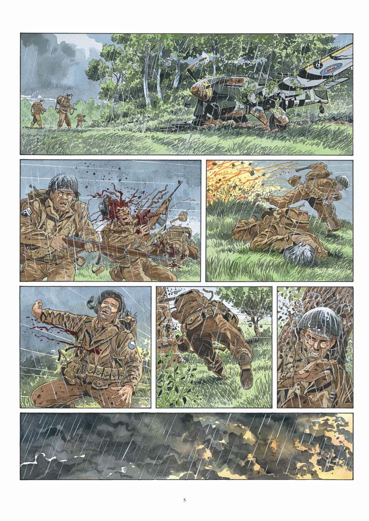 Avec les deux tomes d’AIRBORNE 44 dessinés directement à l’aquarelle, Philippe Jarbinet nous livre un solide récit d’action et un vrai suspense, tout en dressant le portrait intimiste d’une passion inattendue entre un soldat américain et une jeune européenne au cœur de l’une des pires batailles de la Seconde Guerre mondiale. L’omniprésence du danger exacerbe les sentiments et les intérêts, poussant chacun à faire des choix cornéliens qui ne devraient pas être faits en temps de paix. Car une chose est sûre : la guerre ne pardonne aucune erreur et ne fait pas de quartier. Sans avoir l’air d’y toucher et en faisant preuve d’une irréprochable précision dans le moindre détail, Philippe Jarbinet nous entraîne sur les traces d’un pan de l’Histoire qui ne doit jamais tomber dans l’oubli.
