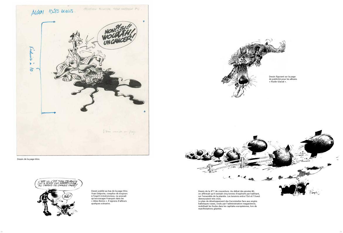 Poursuivant sa dénonciation des injustices du monde contemporain, l’auteur abandonne la couleur. N’utilisant plus que la plume et l’encre de Chine, maniant en virtuose l’humour le plus noir, le travail de Franquin, d’une précision diabolique, suscite un étrange sentiment où l’amusement se teinte bien souvent d’une indéfinissable impression de malaise.