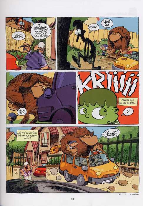 Voici le retour de Grompf dans un tome 3 toujours aussi cocasse et locasse. A un rhythme de sorties d'environ tout les 4 mois, l'auteur sait néanmois garder tout l'efficacité de son trait et nous faire passer un agréable moment de détente et d'humour. Le yéti fait toujours autant de bêtises et cette fois, l'apparition d'un petit chat en début d'album, qui sous ses airs candides cache une véritable petite peste, vous mettera en apetit pour la lecture des gags suivants ou un proffesseur de gym, véritable genre de tyran sorti des marines, enmenera Le yéti et son petit protégé dans une promenade bucolique en forêt (ouille). Il y a également au programme de la devastation de potager, des burp et autres onomatopées gastriques diverses ou encore, des aventures à la plage qui ne manqueront pas de vous dilater les zygomatiques. Les thèmes ne manquent pas et Grompf reste très attachant. Bref, une BD au poil :)