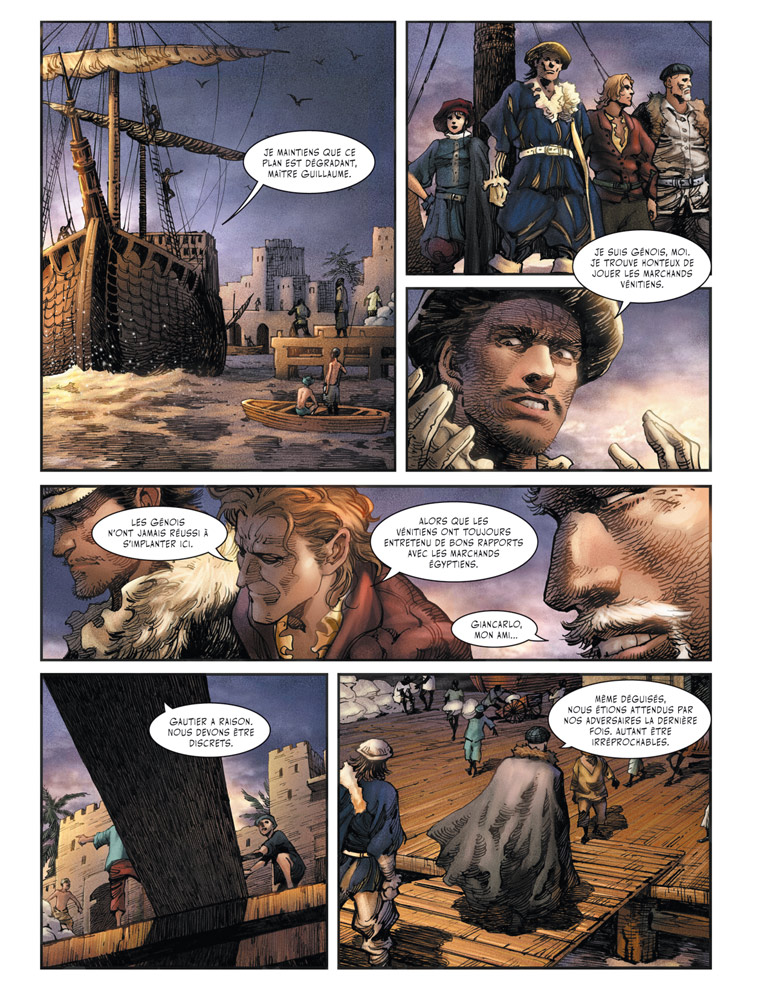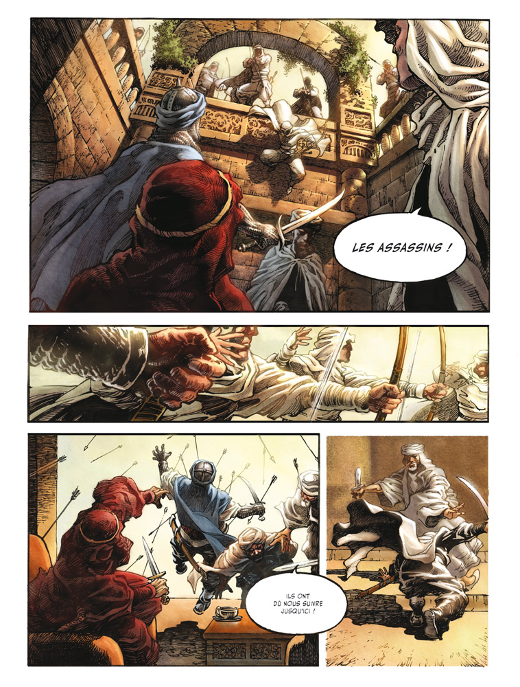 Amateurs de fresques historiques ou histoires de croisades et templiers en tous genre lisez bien ce qui suit : Voici un album absolument merveilleux. D'un point de vue à l'autre, c'est à dire narratif ou graphique vous serez comblé en lisant ce premier tome de Crusades. Un peu à la maniere d'une série télé contemporaine ( action, flashback, crossover comme on les fait par exemple dans la série tv Lost). les auteurs nous proposent l'histoire aussi sous forme d'enquête "policière" enrobé de thriller. Une recette magique qui marche tres bien ! Le graphisme est excellent, le découpage l'est tout autant. Je voudrais vous décrire certaines scènes mais je ne voudrais pas vous gâcher la surprise et le plaisir. En fin d'album il y a une chronologie des événements et un making off "enter the crusades". En toute honnêteté, nous savons que le theme à été surexploité, les croisades sont la sources de bien des albums, mais, un bon conseil, n'en épargnez pas votre envie de découvir cet album !