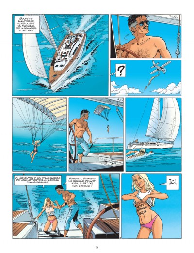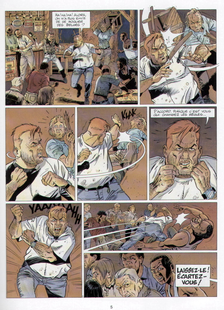 Quand Jean Van Hamme et Christian Denayer ont créé Wayne Shelton, j'ai salivé de plaisir. C'est n'est pas si souvent qu'on trouve en BD un héros quinquagénaire. Sa première aventure comprenait 2 tomes. Je préfère les one shoot (un seul album), mais là, cela en valait la peine. Il y avait un baronnet anglais, un cascadeur espagnol et une pickpocket professionnel (Honesty Goodness). C'était la castagne et une histoire d'évasion. Shelton avait un plan en béton. Il était amoureux d'Honesty. Van Hamme se servait de ses connaissances du monde de la finance, de la politique. On nageait dans l'exotisme et Denayer nous dessinait des femmes à damner un saint (de saint, il en sera question plus tard). Par contre, l'humour était plutôt de bas étage. De Shelton, on savait juste qu'à 19 ans, il avait commandé une unité spéciale de sabotage au Vietnam, expérience qui l'avait beaucoup marqué. Incapable de vivre une vie normale, il avait fait de la contrebande au Moyen-Orient qu'il connaissait comme sa poche. Son seul amour, c'était Honesty qu'il n'épouserait jamais. Et puis Van Hamme jeta l'éponge comme pour Thorgal, comme pour XIII. Il fallait un nouveau scénariste. Le choix paraissait prometteur: Thierry Cailleteau, le scénariste d'Aquablue. Hélas, à partir du tome 6, « L'otage », le repreneur connaissait de gros problèmes d'essouflement qui devenaient manifestes au tome7.