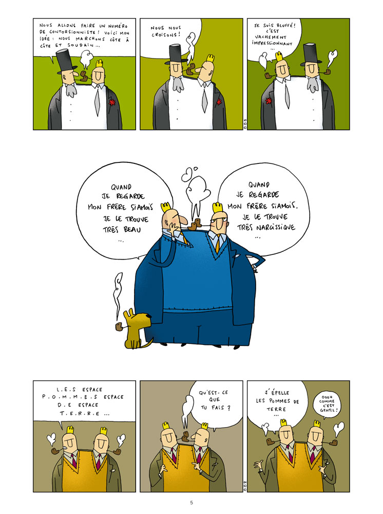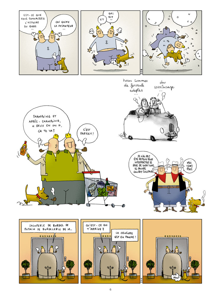 Une préface de Philippe Geluck agrémente les prémices de ce recueil désopilant de gags en une planche ou dessins one shot. On ne se lasse pas de cet humour non-sense à l'anglaise et ce au fil des pages. Les jeux de mots sont délicieux et croustillants, les situations burlesques sont autant d'eclats de rire bienfaisant en cette sombre période que nous vivons en cette année 2010. A recommander aux dépressifs, suicidaires et malheureux de tout poils, grâce à cet album vous ferez une rémission. C'est un véritable anti-dote à la déprime la plus profonde. Franchement rien à dire de négatif sur cet album qui est à consommer sans modération avec un peu de sel. Bonne lecture à tous et préparez vos zygomatique ca va faire mal.