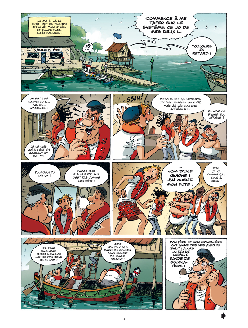 Mais ici, foin d’atermoiements ! Gégé, au scénario, a pris le parti de ne raconter que des histoires qui se terminent bien ! Parfois avec quelques bobos, mais toujours dans les éclats de rire ! Le but est de vous faire rire, et de vous faire connaître le monde des sauveteurs en mer, ces courageux et discrets bénévoles, dont on ne parle pas assez.