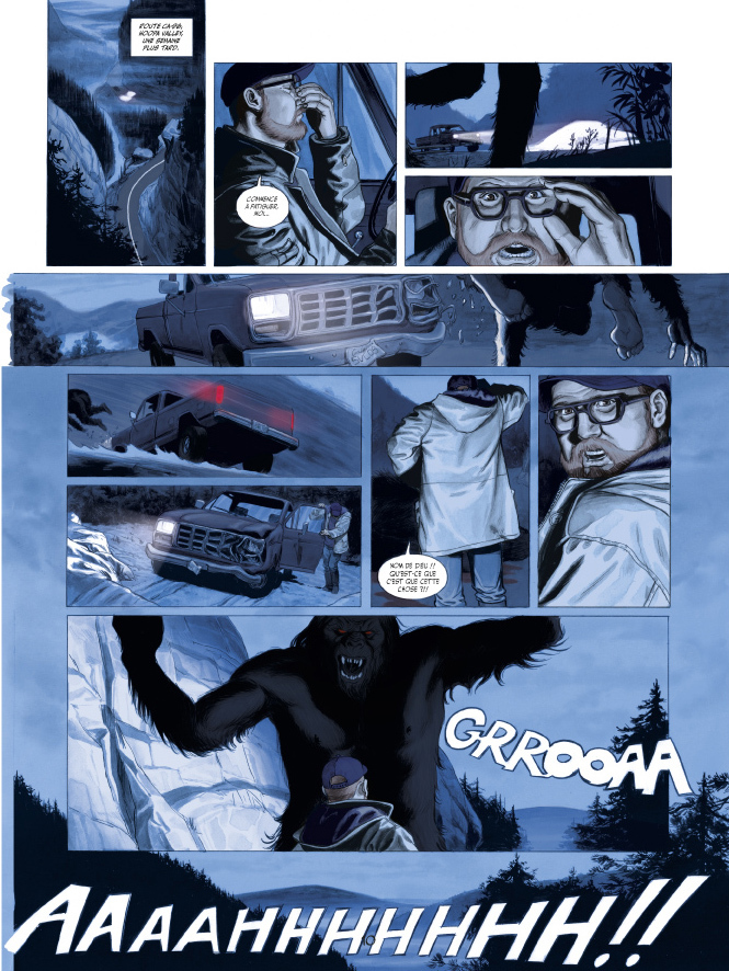 Voila un thème dont les auteurs bd ou plus largement toutes les disciplines médiatiques n'avaient plus abordé depuis longtemps. Certes la mode est au fantastique, à la S.F. ou encore au thriller-action ces derniers temps mais une histoire sur le Big Foot ou, autrement dit Sasquatch est tout bonnement la bienvenue et vient à point dans le paysage visuel du neuvieme art. La chasse au Yeti est ouverte dans ce récit signé Christophe Bec. Rebondissements, frayeur et action garantie ! L'action se déroule à Bluff Creek, capitale dur grand singe des forêt et des montagnes, ville qui profite naturellement de la légende pour faire tourner son économie. Dans cet album, une dimension particulière est donnée grand primate, nous découvrons qu'ils agissent parfois en meute, qu'ils sont organisés et même...sont le reflet de notre lointain passé d'homme des cavernes. Jaouen Salaün à réalisé un travail magnifique, le soucis du détail, la beauté des décors, la force du trait des personnages est un véritable délice pour les yeux. Un second tome qui ne déçoit pas et que je vous conseille d'empresser le pas à vous le procurer.