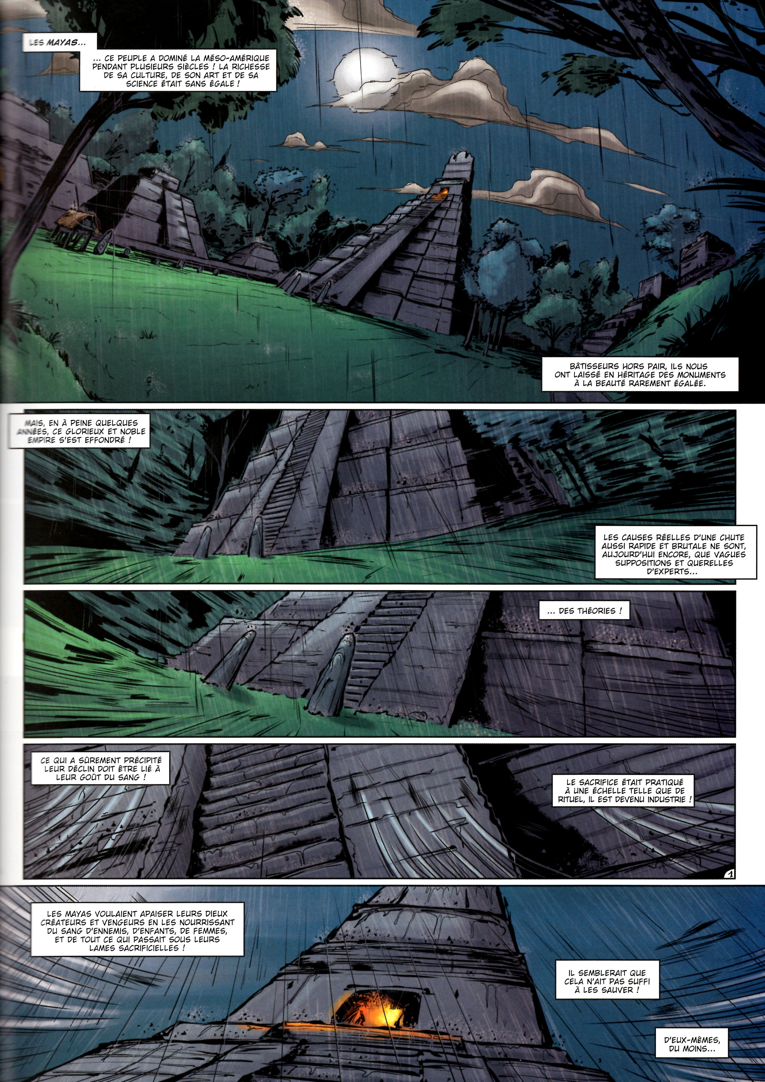 Si le premier tome d'Escobar avait été perçu par certains comme une série B à grand spectacle, l'Esprit de la Forêt dévoile cette fois les composantes d'une intrigue plus fouillée qui constitue le coeur de ce diptyque et nous fait voyager entre 1525, 1985 et aujourd'hui. On situe ainsi qui sont précisément les principaux protagonistes, Escobar et Rosario, ce qui les lie et les oppose. Une histoire bien sombre aux dimensions mythiques face à laquelle l'humour un peu potache des pittoresques habitants du pueblo dedos del diablo constitue une respiration bienvenue (l'apparition de Pepe en catcheur de lucha libre vaut le détour). Stéphane Louis s'amuse avec Escobar, sans cependant perdre de vue le message écologique de la série, d'ailleurs rappelé dans les remerciements figurant en début d'album. Côté dessin, ce tome 2 est, à mon sens, encore plus fort que le premier. L'action prime et se développe selon un découpage extrêmement dynamique. Le trait de Louis est formidablement souple, le dessinateur ne recule devant aucune difficulté de cadrage, nous offrant parfois des perspectives vertigineuses. Ses gardiens Che-E, véritables vedettes de ce second album, sont à la fois impressionants et formidablement vivants. Le tout est joliment soutenu par les couleurs de Vera Daviet. Action, humour, dessin spectaculaire, Escobar propose un excellent divertissement haut de gamme, suffisamment solide pour que des lecteurs aient entamé des recherches quant aux origines de la légende des Gardiens et des Incarnés qui est...totalement imaginaire. Louis, plus souvent cantonné dans la SF, est parvenu à développer ici un univers original avec des personnages très typés mais attachants. Initialement prévu en diptyque, c'est pourtant la mention « fin du Tome 2 » qui apparaît sur la dernière planche de cet album, ce qui pourrait laisser espérer une suite aux aventures du dernier Maya. Tant mieux !