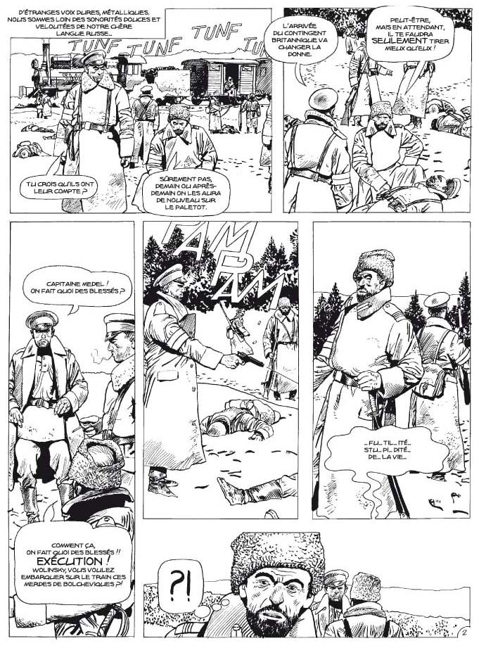 La narration de l’aventure se fait par la lecture du journal intime du comte Gabriel Lazarev, où il y raconte son histoire : Il se trouve être à la tête d'un complot terroriste communiste, les périples de sa relation amoureuse contrariée.Puis déporté en Sibérie, il se retrouve dans un camp de bagnards qui construisent le transsibérien, même si l’on connaît rapidement le sort de Gabriel, les multiples rebondissements de son aventure nous gardent accrochés à l’histoire ? Les traits noir et blanc détaillés rendent cet album unique et très intéressant.