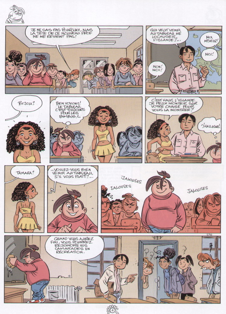 Depuis sa double rupture amoureuse avec Diègo & Kessi, Tamara déprime grave ! Cette déprime, elle la rejette sur son entourage et en devient même presque associable. Seule son amie Jelilah la comprend restant fidèle en amitié. Et pourtant, l’arrivée d’un jeune professeur au lycée va faire tourner bien des têtes. Jelilah tombe involontairement sous le charme de ce manipulateur, délaissant sa famille et ses amies. Seule Tamara répondra présente lorsque la situation va dégénérer, prenant la défense de son amie. Zidrou dresse un portrait judicieux de ces amours adolescentes pouvant entraîner des drames. Il fait prendre conscience aux jeunes filles qu’il y a au pays de la séduction des jeunes loups plus âgés, munis de grandes dents, prêt à tout dont il faut se méfier. L’ensemble est savamment illustré par son complice Christian Darasse pour qui Tamara est devenue en quelque sorte sa fille de papier. Une note maximale pour une réalisation dont on pourra admirer l’adaptation cinématographique dès la rentrée 2016.