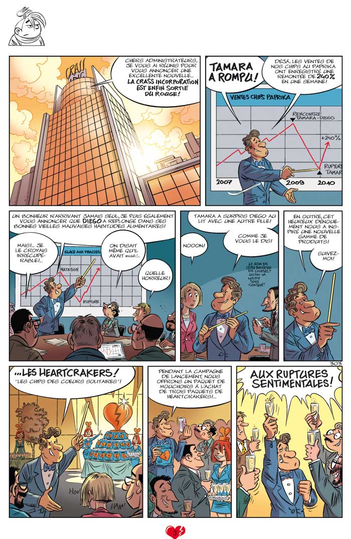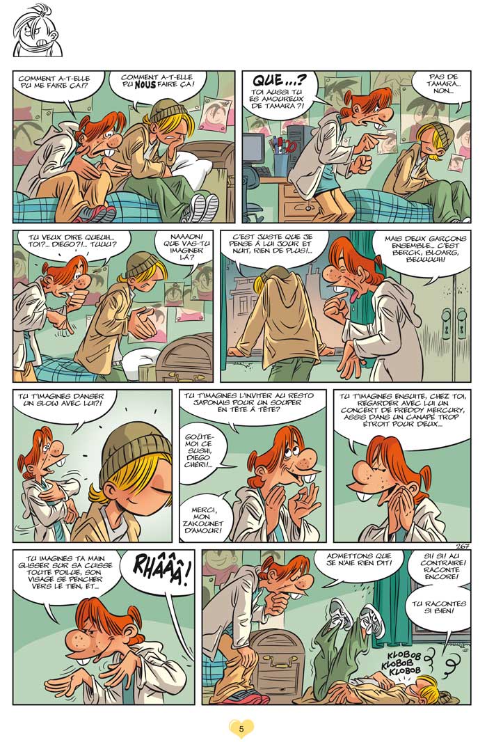 Ouf ! J'ai eu très peur en lisant les premières pages de ce nouvel album (je me demandais où le scénariste voulait emmener son public), mais très vite on replonge dans l'univers de Tamara victime de son chagrin amoureux envers le beau Diego avec les incidents qui en découlent.