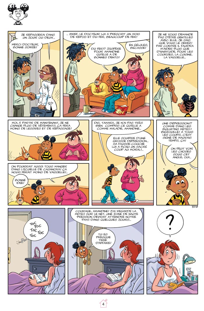 Onzième épisode pour Tamara et sa petite famille ! Comme décrit ci-dessus , le scénario de Zidrou plonge le lecteur face à la dépression d’Amandine (la maman de Tamara) suite à la perte d’un nourrisson. Zidrou nous fait aussi ressentir les difficultés quotidiennes (racisme) rencontrées par Yoli et son papa ! Sans atteindre les sommets du tome 7 (N°1 des consultations du site internet Dupuis depuis plusieurs mois), cet album est plaisant à lire tout en vous faisant passer un agréable moment. J’allais oublier la patte graphique de Christian Darasse qui continue à animer avec talent cette joyeuse famille recomposée. En cadeau avec ce onzième tome, Tamara représentée par différents collègues dessinateurs de Christian Darasse !