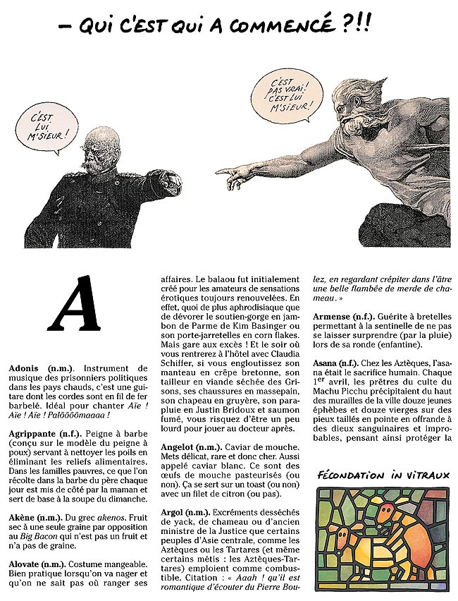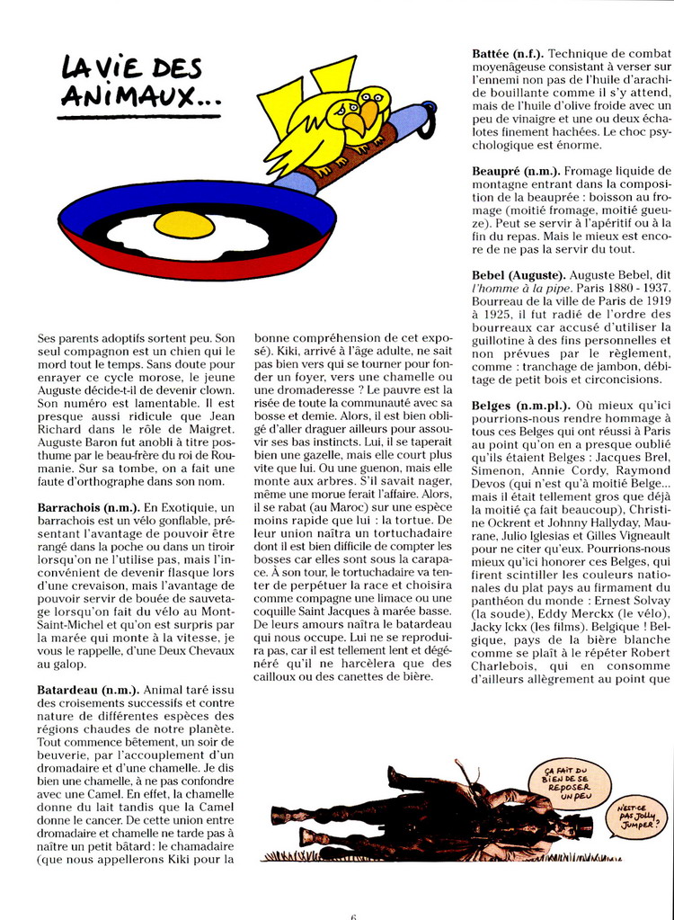 Délaissant son CHAT, le temps d’un album, Philippe Geluck nous propose sa version personnalisée de l’Encyclopédie Universelle : Made in Belgium. Un recueil qui nous fait découvrir avec beaucoup d’humour la richesse (parfois insoupçonnée) de la langue française. Une belle occasion de redécouvrir également un florilège des “Petits métiers oubliés” présentés par Philippe Geluck dans Vivement Dimanche prochain.