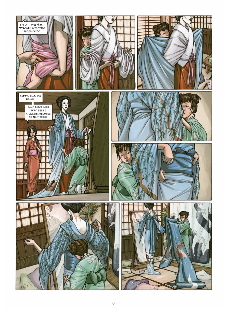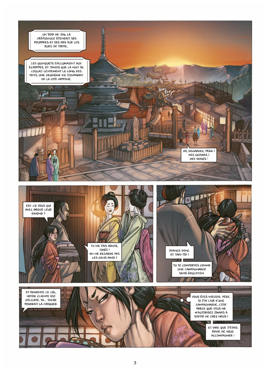 Une histoire de Geisha vue par une femme, Isabelle Plongeon qui nous entraine dans le Japon d'un vingtième balbutiant. Vous serez rapidement pris d'affection pour l'héroïne de ce récit qui est emprunt d'émotions, d'intrigues, couleurs pastels, tout semble calculé pour nous invertir dans l'histoire d'Isako. Un album qui se laisse lire sans aucune anicroche.