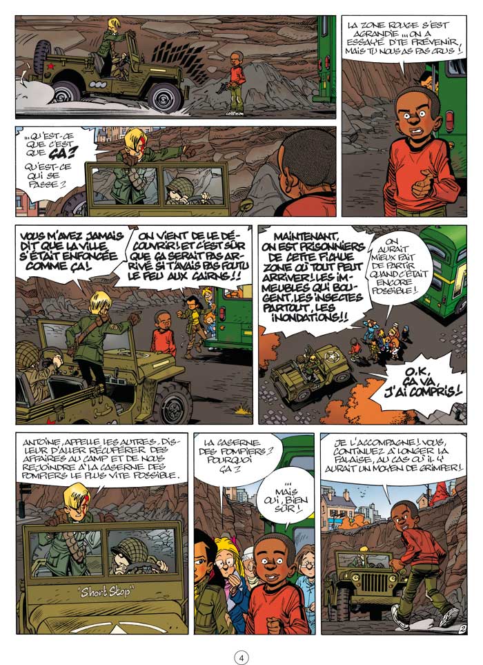 Suite à la véritable guerre de territoire à laquelle se sont livrés les deux clans rivaux, les enfants se sont enfoncés dans la zone rouge qui, elle-même, s'enfonce dans le sol. Trop tard pour faire demi-tour. Seule solution : trouver des parapentes dans un magasin de sports abandonné et sauter d'un immeuble assez haut pour s'envoler vers le sommet de la falaise. Ensuite, jeter des échelles de corde à ceux restés en bas. C'est en tout cas dans ce défi complètement fou que Dodji et Saul, les deux chefs de clan et ennemis intimes, vont se lancer...car le temps presse !